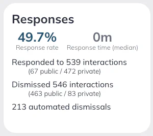 Displays total amount of interactions dismissed, split into public vs private messages.